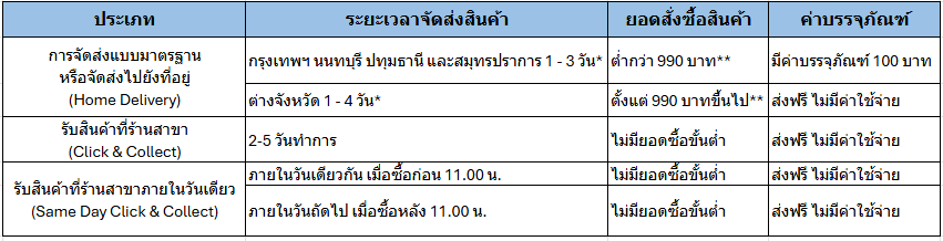1. รับสินค้าที่ร้านสาขาภายในวันเดียว (Same Day Click&Collect) มีให้บริการ 39 สาขา